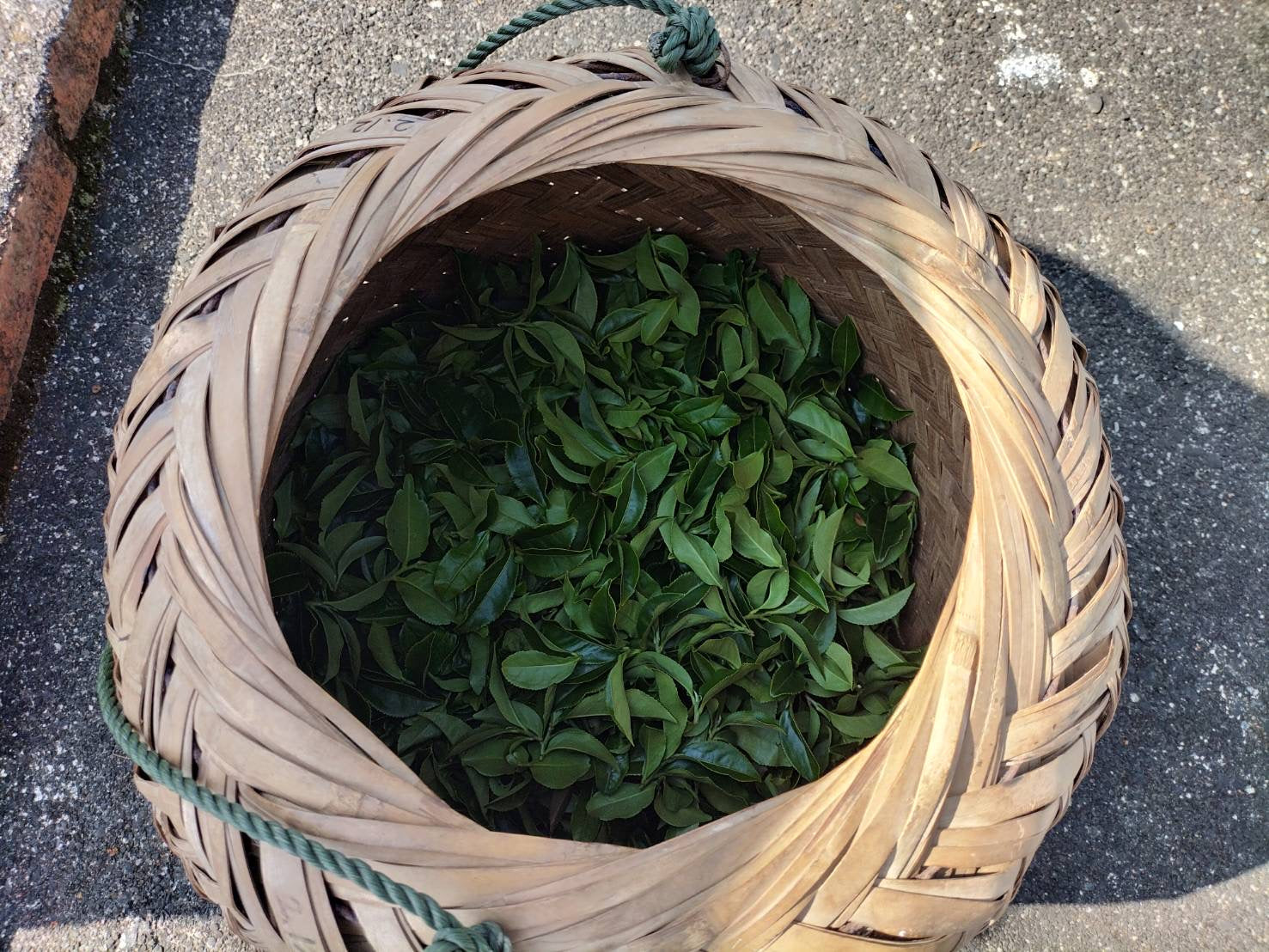pictured: Aunties harvest the tea leaves into baskets like these and are paid by weight.